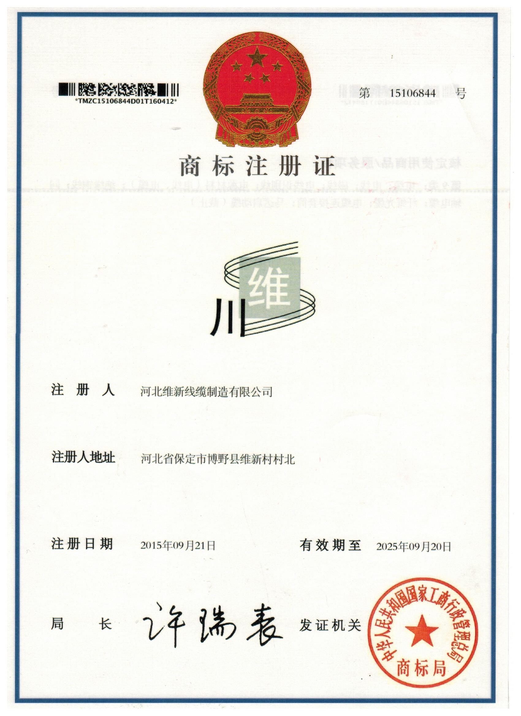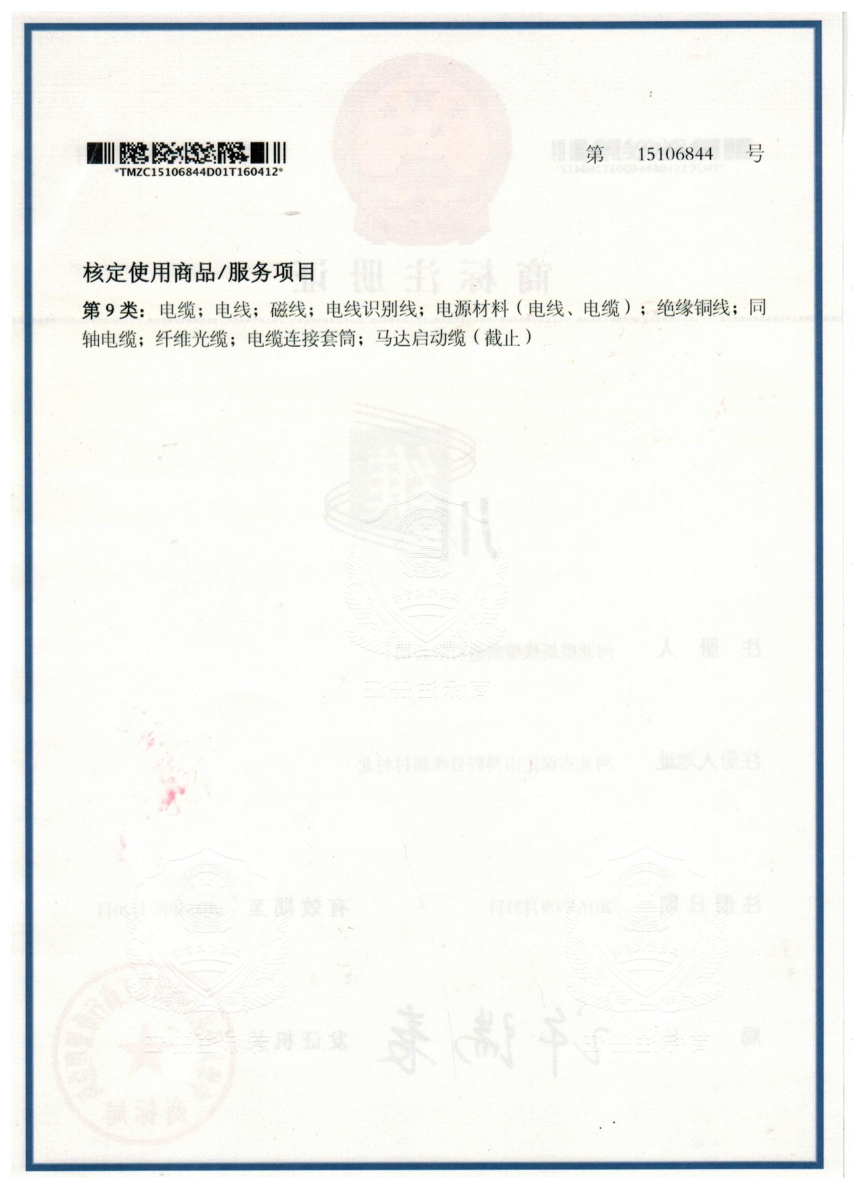 商标注册证书