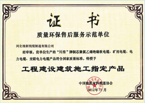 质量环保售后服务示范单位